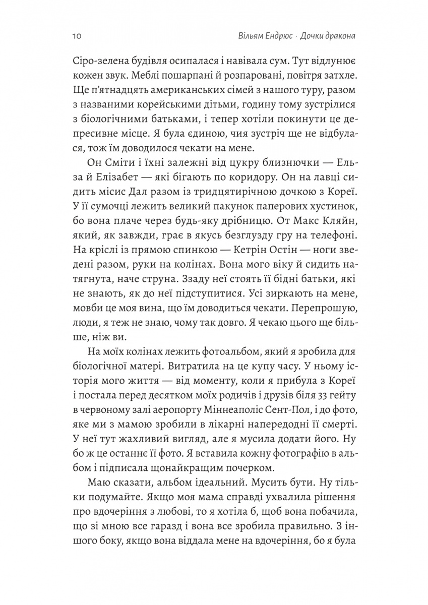 Вільям Ендрюс (William Andrews) — американський письменник, автор історичних романів. Свій дебютний роман The Essential Truth Ендрюс писав п’ятнадцять років, здобувши, зрештою, за нього перше місце на Мейгевенському конкурсі художньої літератури у 2008 році. Близько тридцяти років працював копірайтером і керівником відділу маркетингу у кількох компаніях зі списку Fortune 500, а згодом очолив власну рекламну агенцію. Найбільшу популярність йому принесла сага Daughters of the Dragon, що стала міжнародним бестселером. Станом на кінець 2019 року роман було продано накладом понад 250 000 примірників. Його донька родом із Кореї — країни ранкового спокою — ще немовлям, пробудила в ньому глибокий інтерес до корейської культури, історії і трагедій ХХ століття. Цей інтерес згодом ліг в основу цілої серії романів, що завоювали серця читачів по всьому світу.
