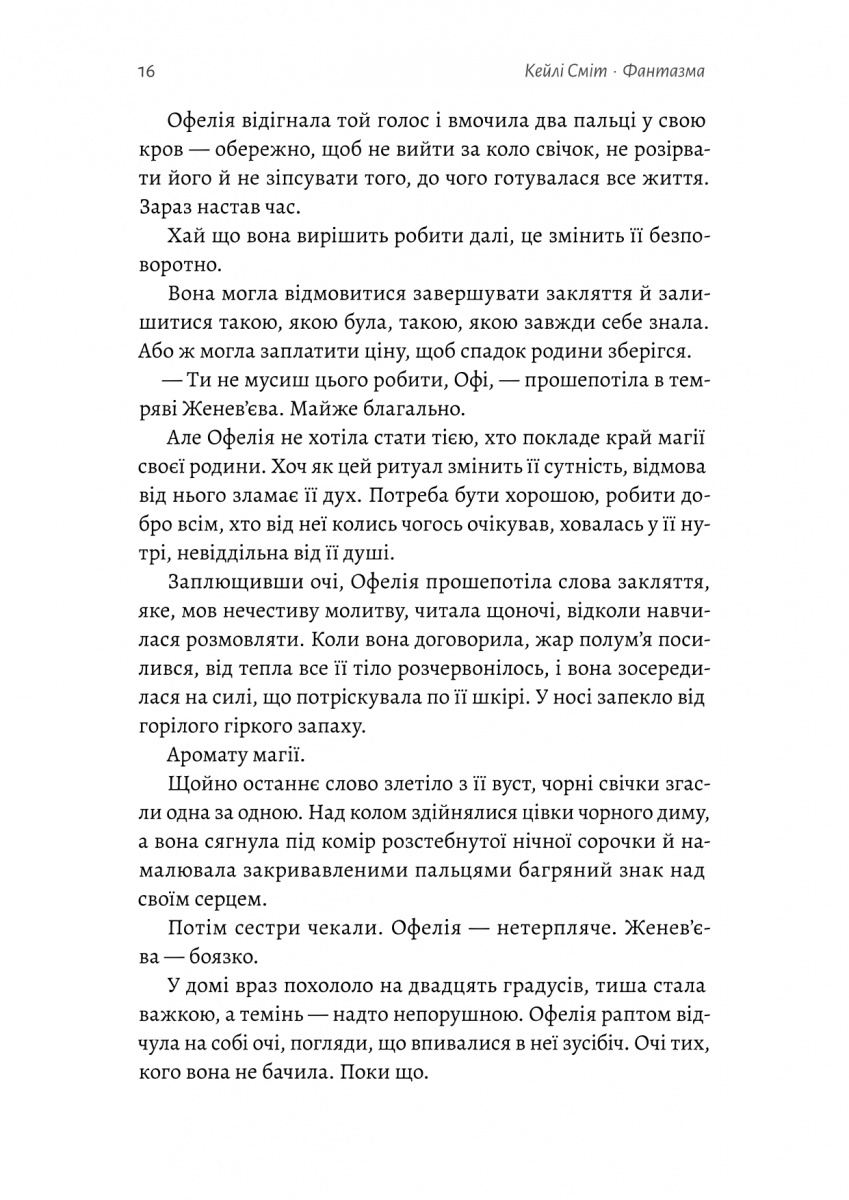 Чарівно, напружено й пікантно. «Фантазма» — це романтично-темна пригода, від якої перехоплює подих. Сміт майстерно вплела дев’ять кіл пекла в історію, що одночасно й викликає захват, і змушує здригатися. Читачам сподобається стежити за Офелією в цій грі розуму й кошмарів. Додайте до цього вдумливе зображення нейровідмінності та повороти, яких я зовсім не очікувала, — і ось вам книжка, яку читатимете до глибокої ночі!