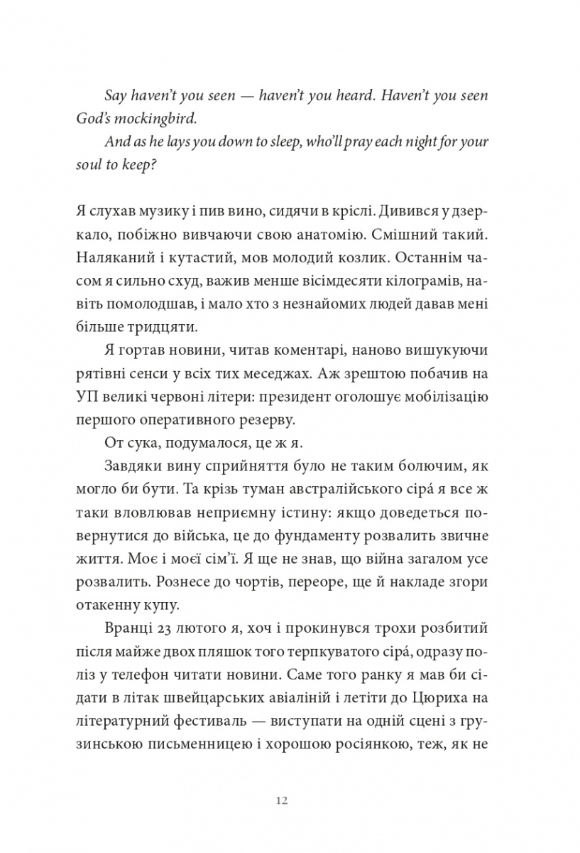Це книга про цивільного, який стає солдатом, але не романтизовано, а чесно, боляче, іноді відсторонено. Це твір про те, як людина змінює ідентичність — вимушено, без вибору, під тиском обставин, і як ця нова «роль» починає витісняти справжнє «я».