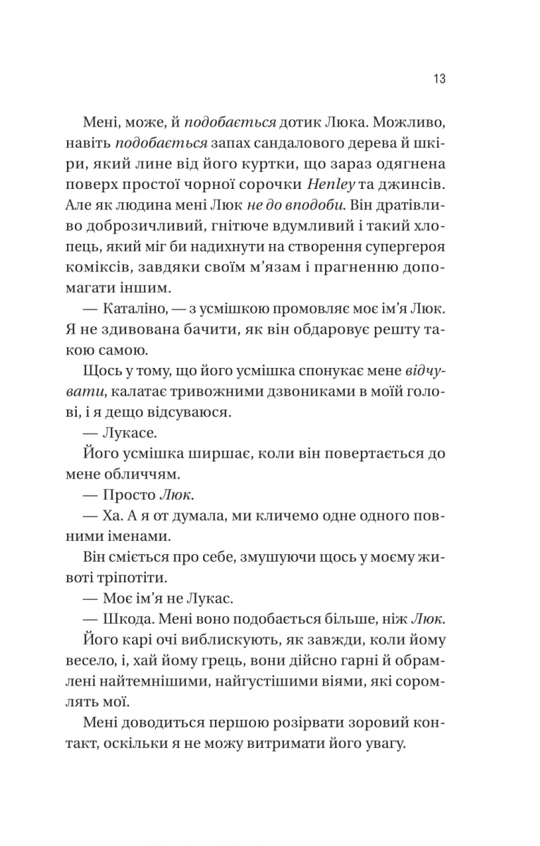 Він — чарівний, харизматичний і... непристойно привабливий. Вона — принципова, саркастична, стримана. І попри внутрішній супротив, Каталіна не може ігнорувати того факту, що Люк поволі розтоплює її серце, як зимове сонце — лід на вікні.