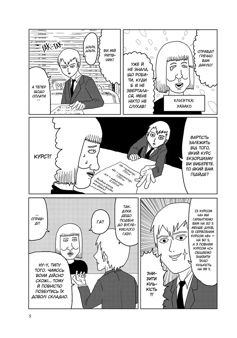 Вам чи комусь із ваших знайомих потрібен екзорцист, який працює дешево? Рейґен — це той, хто вам потрібен! У чому полягає його секрет боротьби з привидами при збереженні низьких цін? По-перше, він шахрай, а по-друге, він платить тому, хто має справжні екстрасенсорні здібності — своєму асистенту Шіґео Каґеяму — не більше мінімальної заробітної плати. Шіґео на прізвисько Моб — незграбний, але добрий хлопець, чиє бажання допомагати іншим і ладнати з ними пов'язане з психологічними захисними механізмами, які він встановив на власні емоції. Рейґен знає, що має експлуатувати Шіґео, щоб залишатися в бізнесі, але, хай там як, він також є його наставником і радником. І також знає, що коли емоції цього зазвичай стриманого хлопця досягають рівня 100, це може вивільнити більше екстрасенсорної енергії, ніж будь-хто з них може витримати!