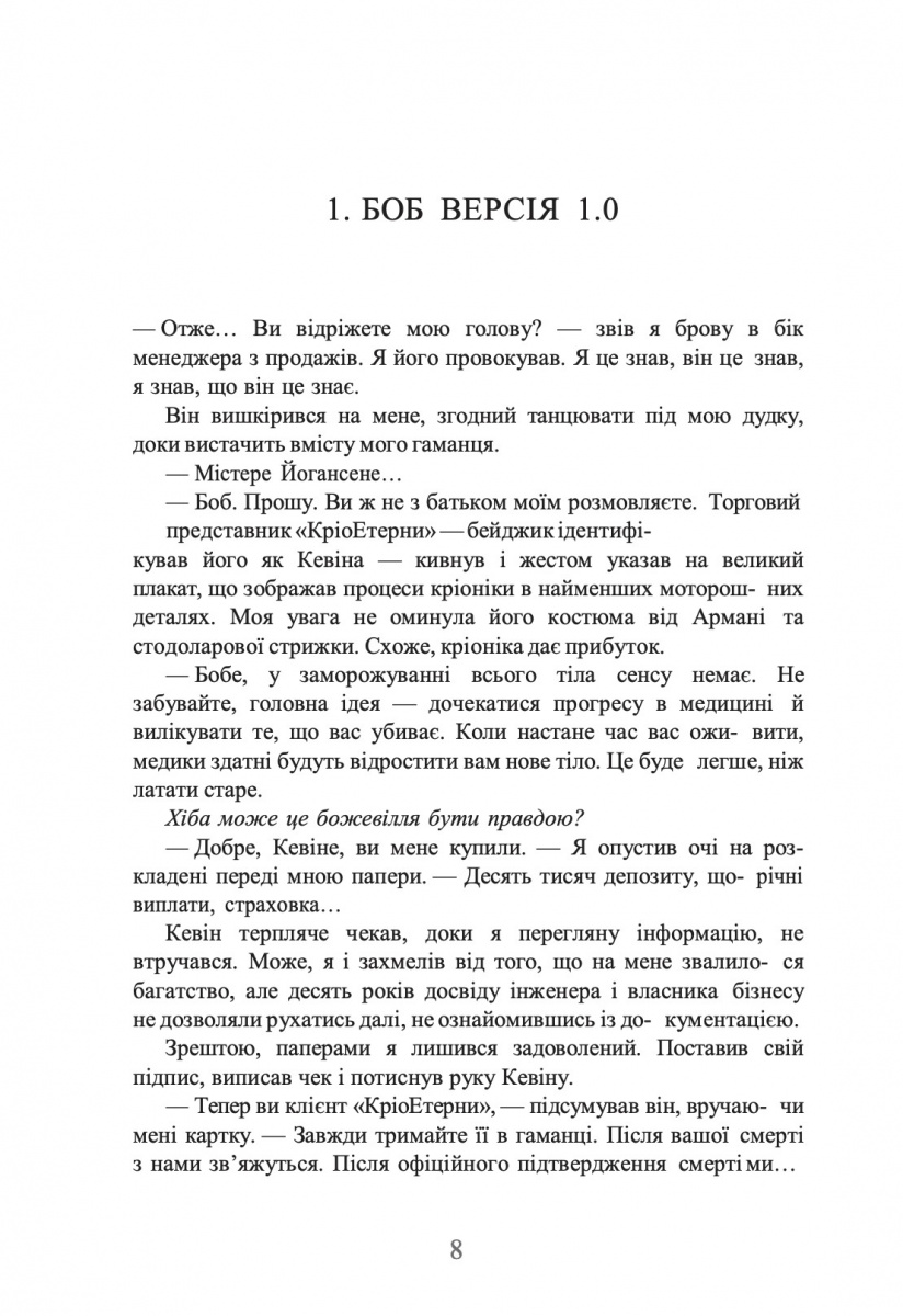 Чому роман «Ми легіон (Ми Боб)» був визнаний найкращою книжкою в жанрі наукової фантастики 2016 року? За її нестримний та сміливий запал та іронічний гумор! Боб Йохансен щойно продав свою компанію з розробки програмного забезпечення за невелику винагороду і мріє про життя на широку ногу. Перше в його списку справ: витратити отримані гроші. Він вирішує винайняти службу, яка збереже його голову в кріогенній камері на випадок смерті. Але за мить він гине, переходячи вулицю. Прокинувшись через 117 років, Боб виявляє, що його розум завантажено в інтелектуальний космічний зонд, здатний самовідтворюватися. Боб і його клони тепер мають місію знайти нові домівки для людства, і для цього вони сміливо вирушать туди, де ще не бував жоден Боб.