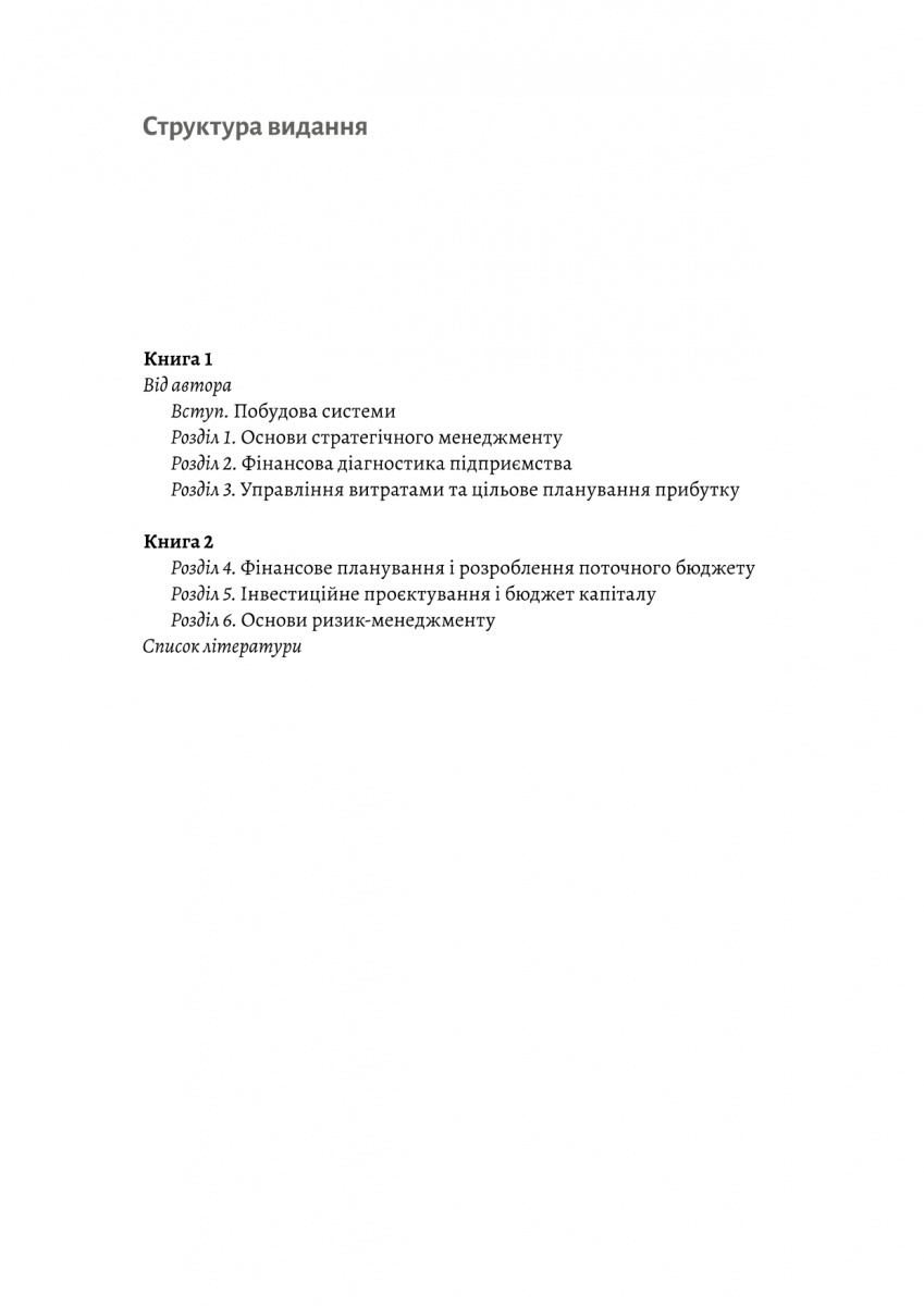 Ця книга є третьою в серії із чотирьох книг автора, у якій послідовно викладено основні розділи технології Business Intelligence. Перша книга серії «Менеджмент в умовах невизначеності» дає загальне розуміння про Business Intelligence і призначена для власників та топменеджменту компаній. Друга книга «Стратегування в умовах невизначеності» присвячена основним положенням розроблення й виконання стратегії. Фокус уваги другої книги зосереджено на формулюванні підходів для досягнення стратегічних цілей, які зацифровані, тобто представлені за допомогою KPI. У цьому сенсі викладені тут підходи й інструменти можуть бути трактовані як Strategic Intelligence. Третя ж книжка є логічним продовженням другої, оскільки в ній формується комплекс побудов корпоративних фінансів, який пояснює, наскільки виконання стратегії було успішним із погляду досягнення головної мети будь-якого бізнесу — одержання бажаного власником прибутку і грошового потоку.