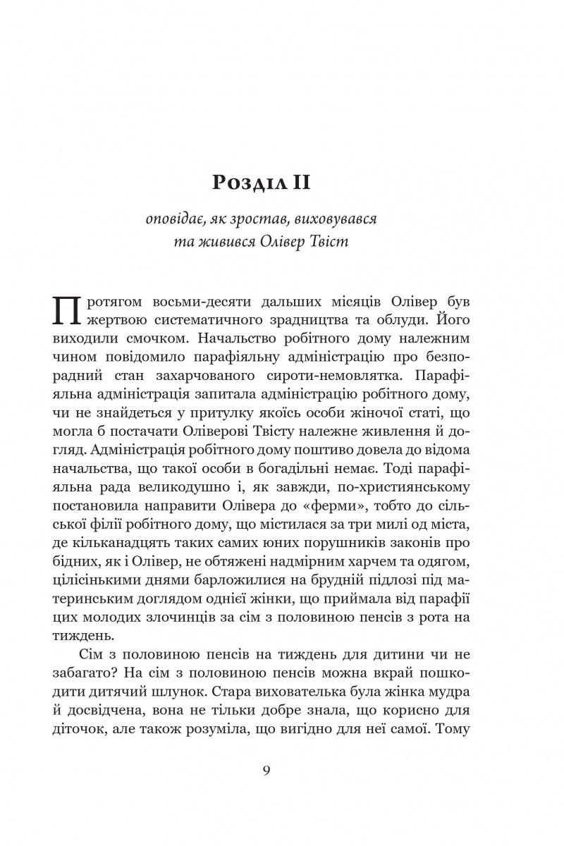 «Пригоди Олівера Твіста» — один із найвідоміших романів Чарлза Дікенса, вперше опублікований у 1837 році. Це зворушлива й водночас трагічна історія про хлопчика-сироту, який народився у притулку для бідних у вікторіанській Англії.