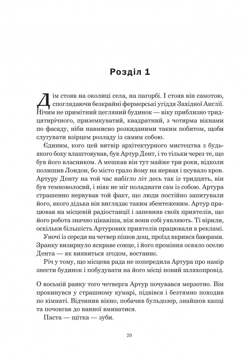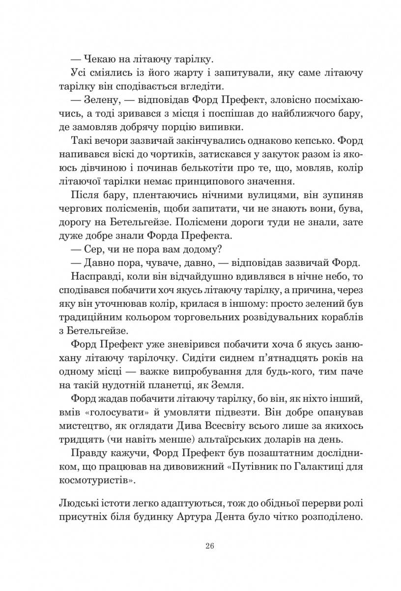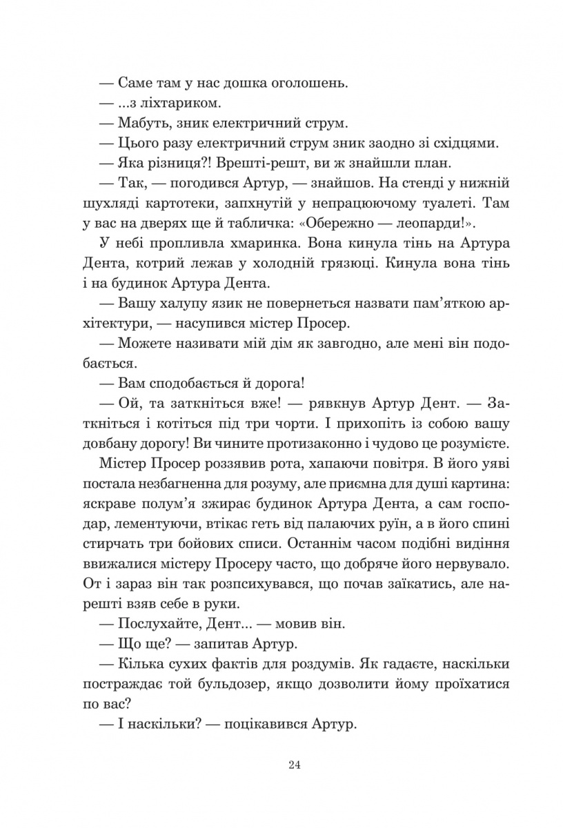 - Перша частина в серії гумористичних науково-фантастичних романів Дуґласа Адамса.