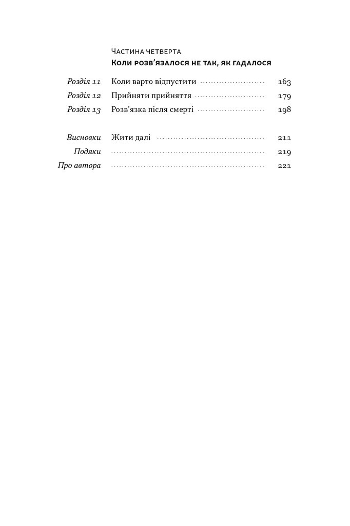 Не лише про стосунки. Автор розглядає завершення у всіх сферах життя: кар’єрі, дружбі, родині, здоров’ї.
