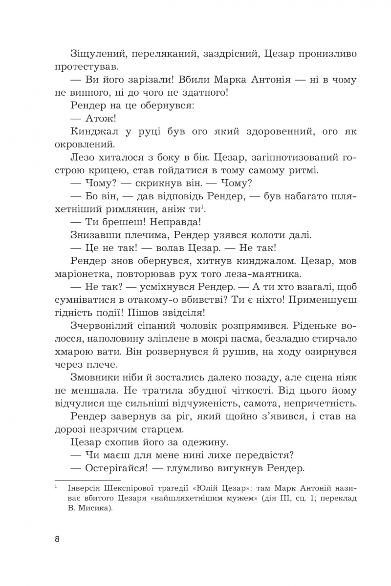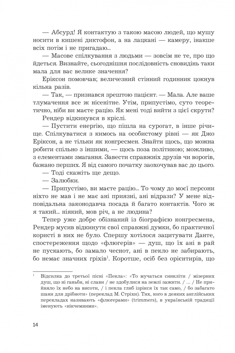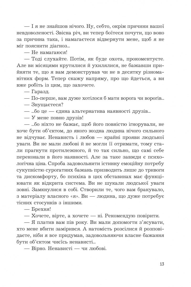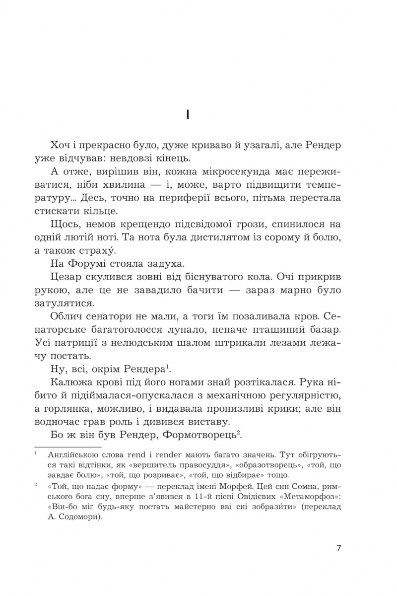 «Він же не абихто, а формотворець на прізвище Рендер — один із приблизно двохсот вузькопрофільних психіатрів, чия власна душевна будова давала їм змогу входити в невротичні структури й не виносити звідти нічого, окрім естетичної насолоди від мімезису аберації. Капелюшник, але не божевільний, а навпаки»