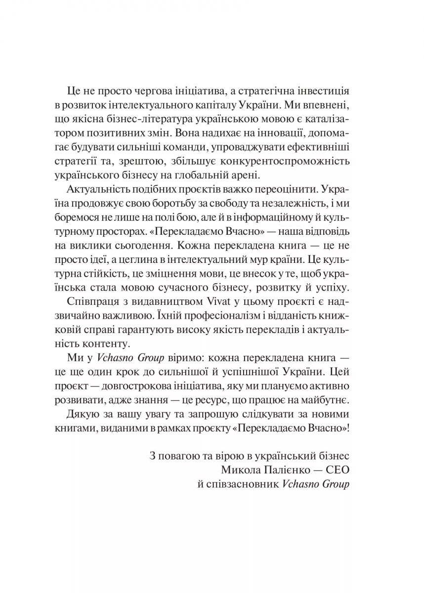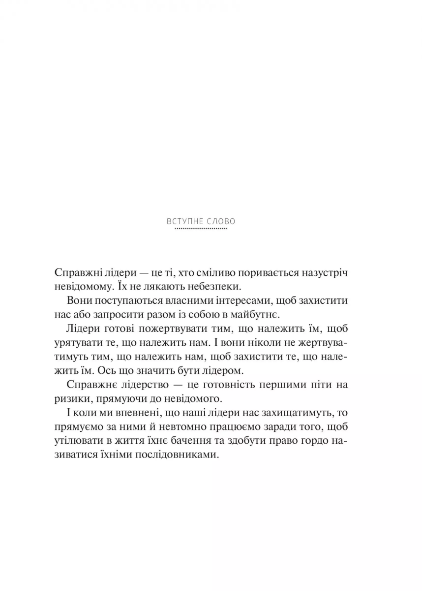 - Сподобається шанувальникам книжок «Лідерство. Шість стратегів світової політики» Генрі Кіссинджера, «Вірний завжди. Бізнес-лідерство на принципах морської піхоти» Дена Керрісона, Рода Волша та «Щоденник CEO. 33 закони для бізнесу та життя» Стівена Бартлетта.
