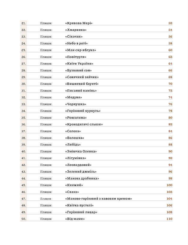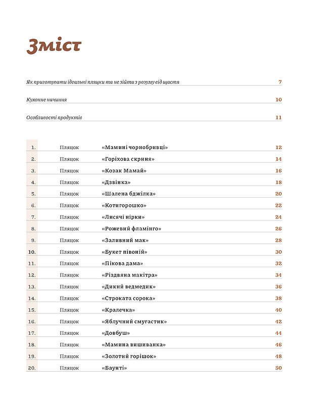 У книжці представлено широкий асортимент пляцків для будь-якого свята. Серед найпопулярніших: