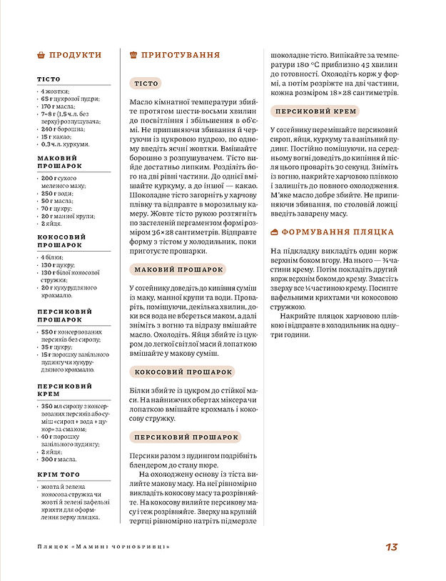 «Святкові галицькі пляцки» — це книжка, яка об’єднує традиції Західної України, перевірені рецепти та любов до випічки. Тут зібрані найкращі варіанти десертів, які готували на Різдво, Великдень, весілля та інші важливі події. Рецепти включають у себе різноманітні коржі, креми, начинки та глазурі, які створюють гармонійний смак і розкішний вигляд.
