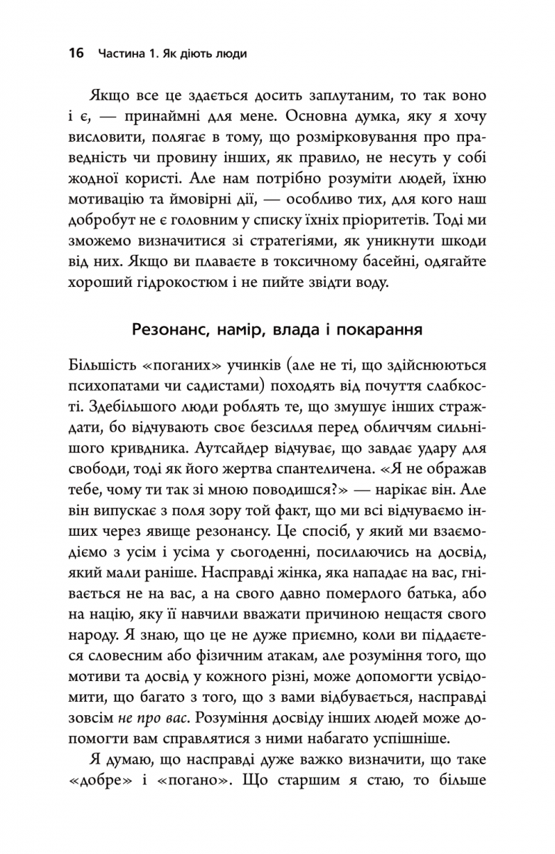 - Книжка допомагає зрозуміти, хто такі маніпулятори, нарциси, жертви, контролери й чому спілкування з ними виснажує.