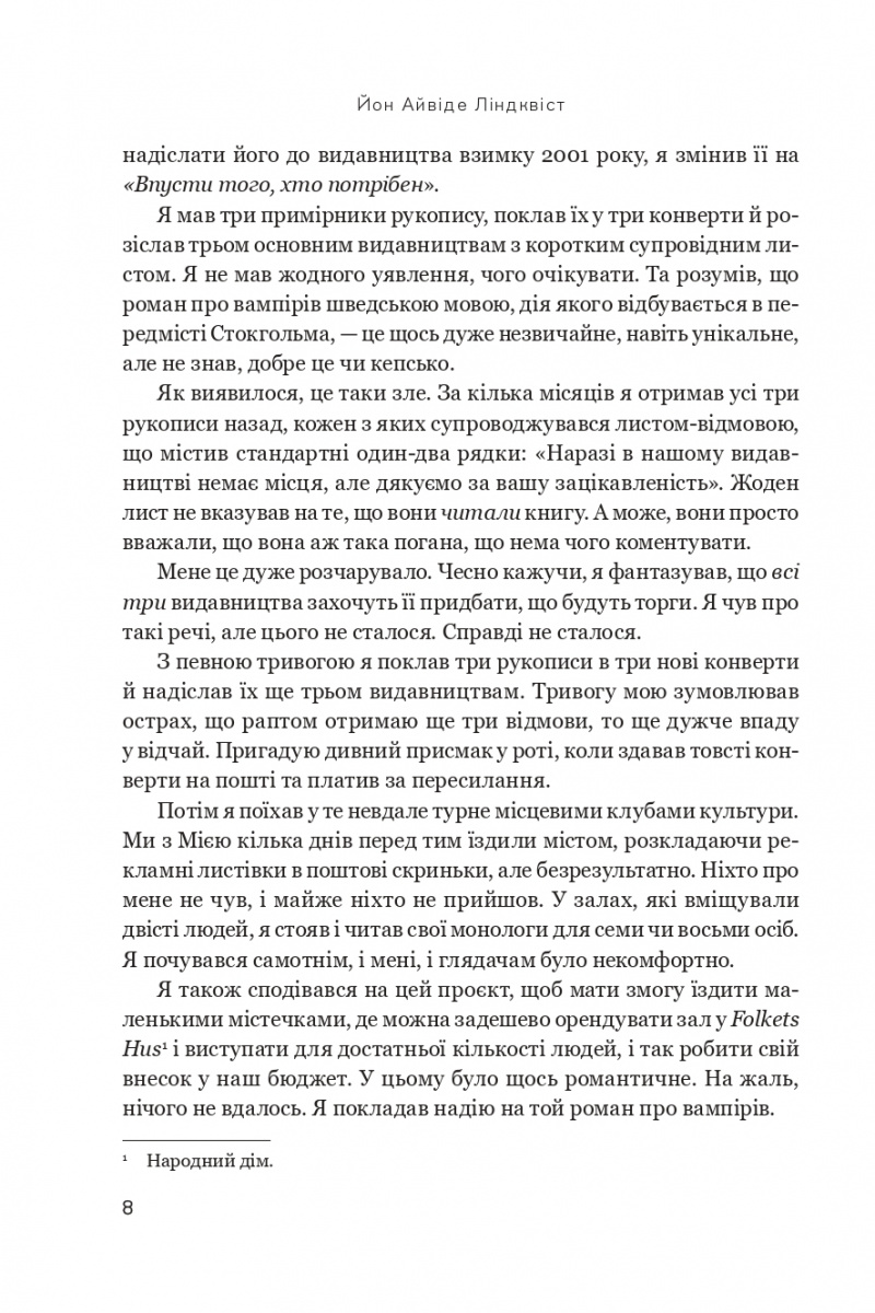 Міжнародний бестселер: успішний дебют Йона Ліндквіста, що зробив його ім’я культовим серед шанувальників горору.