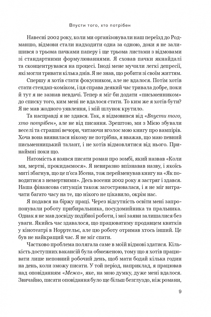 Роман «Впусти того, хто потрібен» — міжнародний бестселер, який поєднує кохання, помсту та соціальну драму у блискучій інтерпретації вампірського міфу.